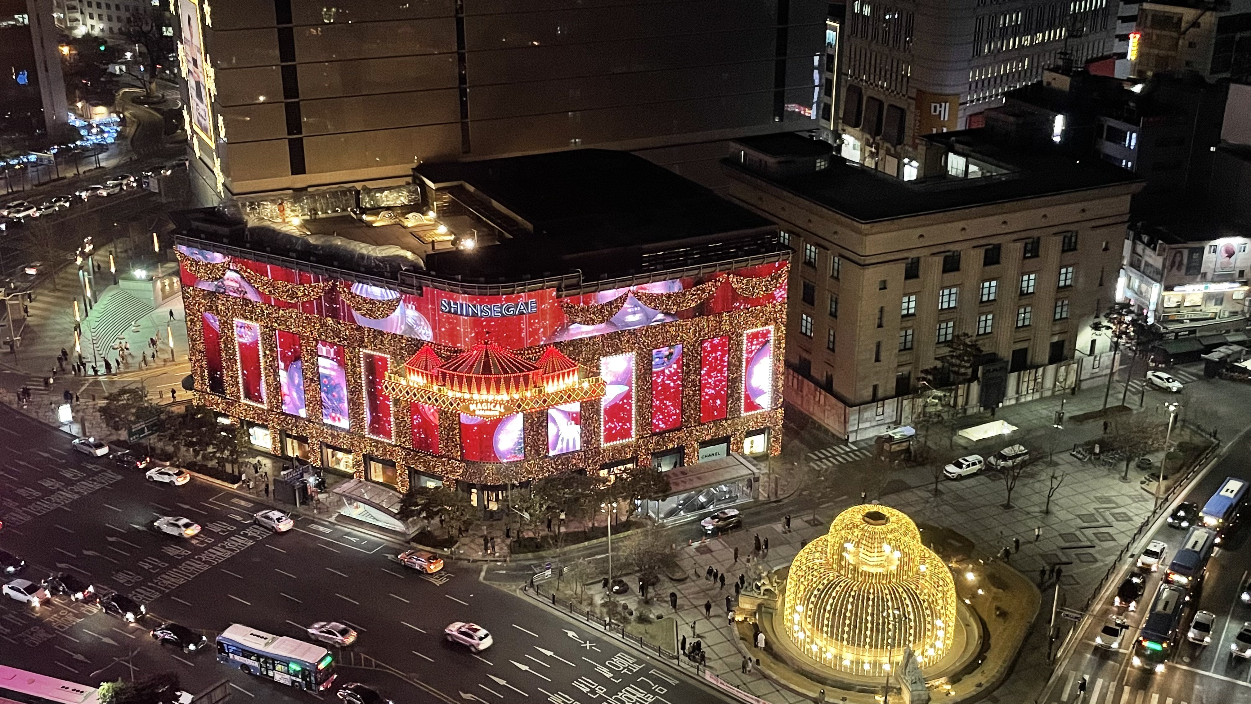 바로 맞은 편에서 신세계 본점 크리스마스 미디어 파사드를 구경하실 수 있는데요.