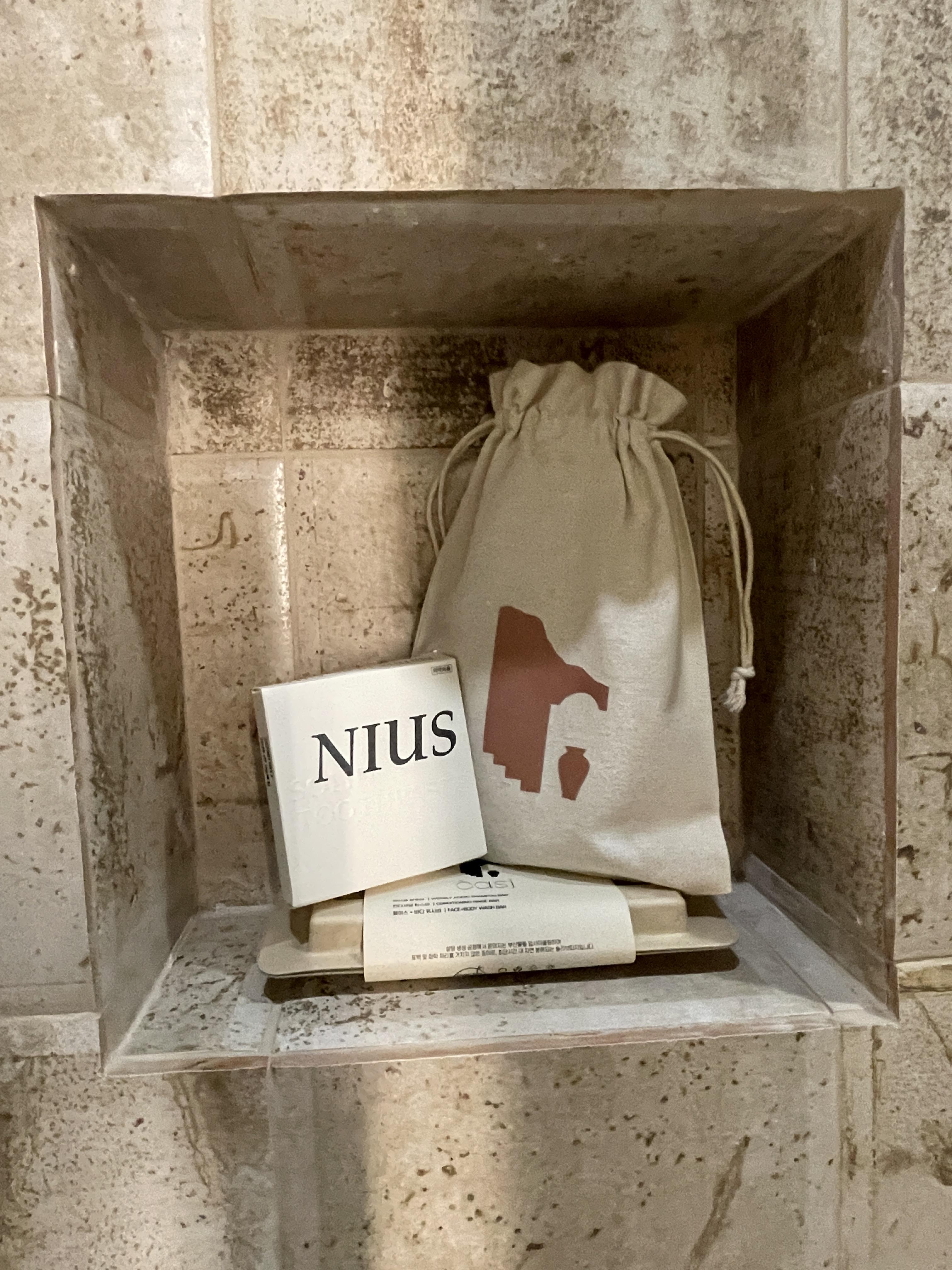 고체 어메니티였고, 치약도 고체, 샴푸/린스/페이스-바디 바가 있습니다.