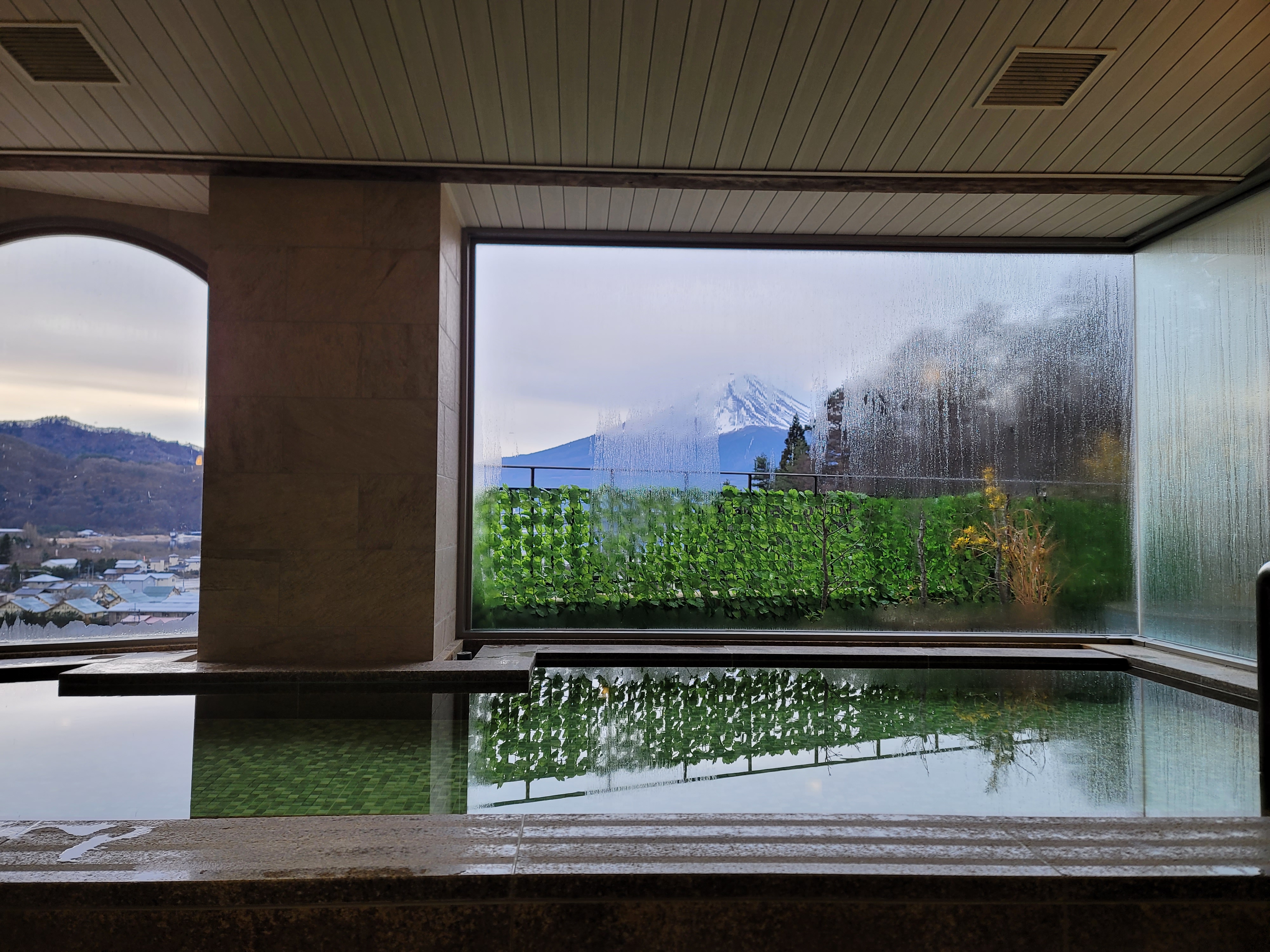 테라스 욕조에서 보이는 후지산 뷰. 우어어