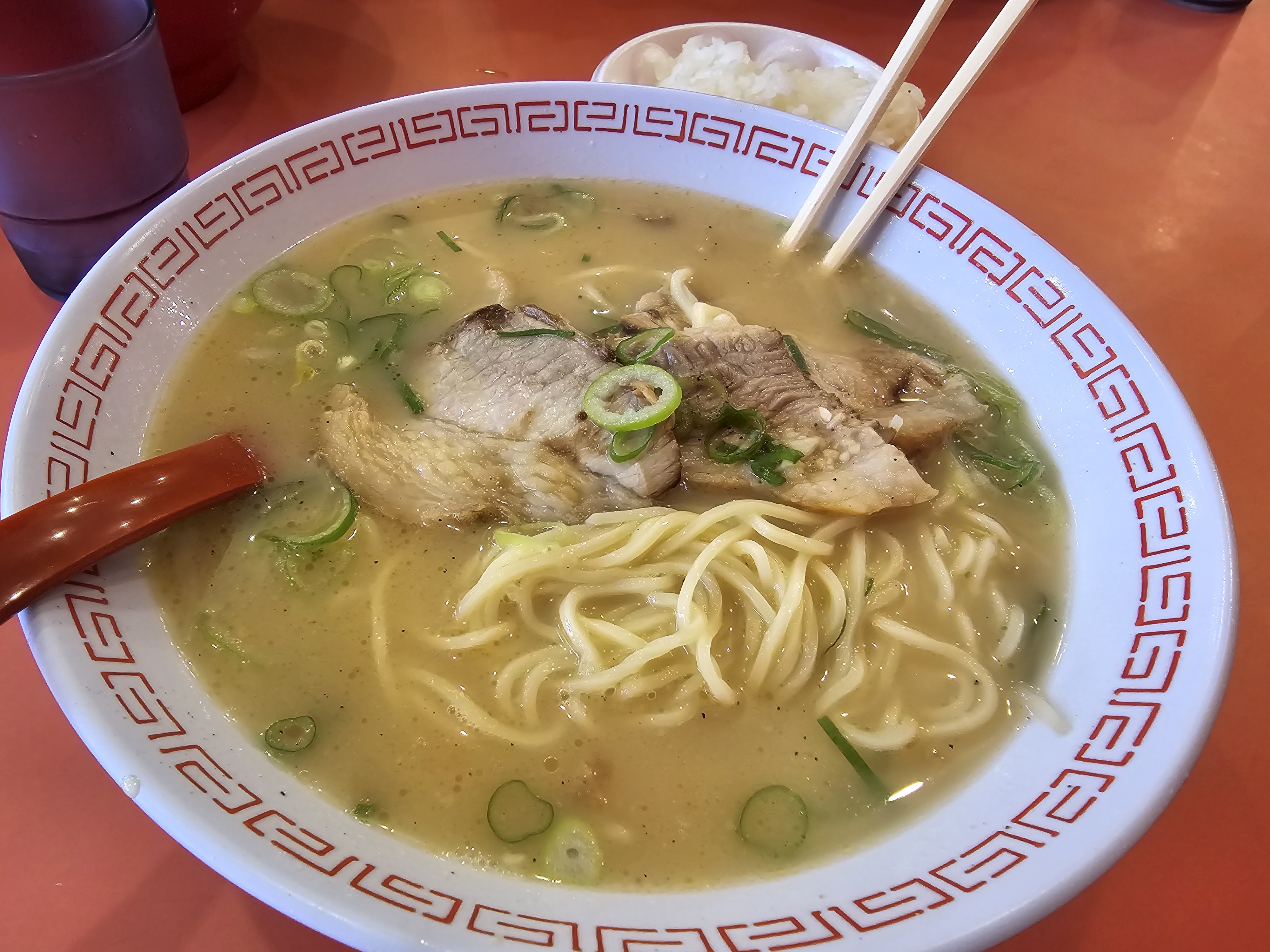 이 킨류 라멘은 담백한 육수를 즐기며 먹을 수 있어요.